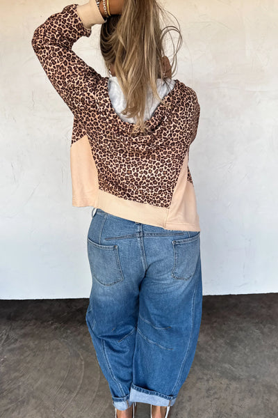 This half-zip hoodie pullover features a relaxed, swing-style fit. With a super soft texture, roomy hood, kangaroo pockets, and an easy half-zip neckline, it’s the perfect throw-on layer for effortless everyday style.